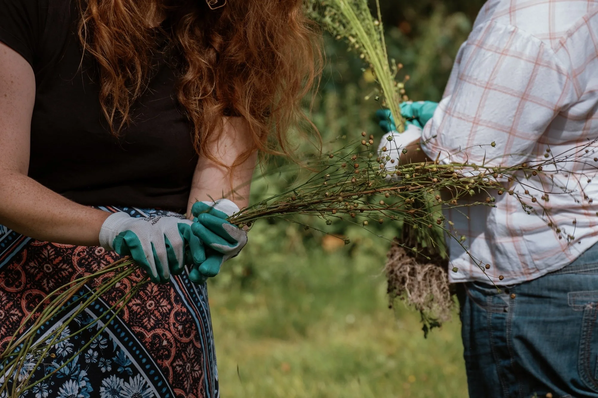 On 5th September, we harvested the flax from Victoria Park with the help of some of the Victoria Park Garden team and volunteers. This flax didn’t grow as tall as the Landport flax but instead grew densely.
